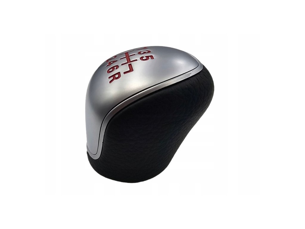 Hlavice řadící páky Ford S-Max 2006-2022 6st stříbrná červená. Závit 12mm. R vpravo dole. Stříbrná hlavice řadicí páky s červeným schématem řazení pro šestistupňové převodovky.