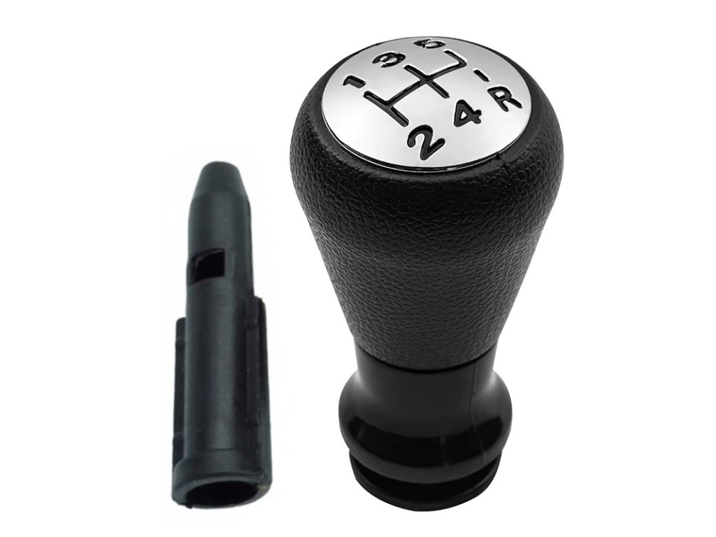 Hlavice řadící páky Peugeot 107. Hlavice je určena pro vozy s manuální 5-ti stupňovou převodovkou a zpátečkou vpravo dole. Hlavice je vyrobena z plastu, který je velmi příjemný na dotek. Průměr otvoru pro řadící tyč je 16 mm. Součástí balení je plastový adapter, na který se posléze nasune hlavice.