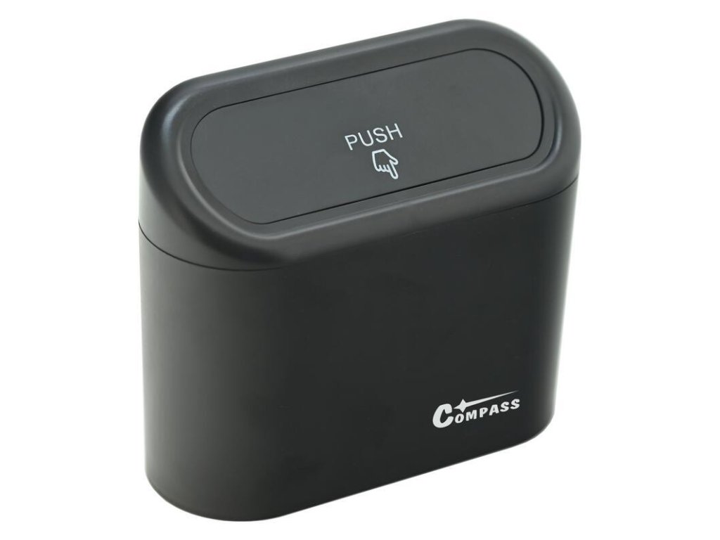 Odpadkový koš se sklápěcím víkem, vhodný pro udržování pořádku ve vozidle.