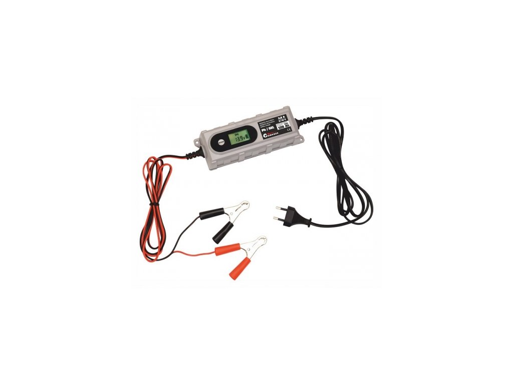 technická data napájecí napětí 230 V ~ 50Hz příkon max 180W nabíjecí napětí / proud režim 6V 7,3 V=; 0,8 A eff. režim 12V Moto 14,4 V=; 0,8 A eff. režim 12V Auto 14,4 V=; 3,8 A eff. režim 12V Zimní 14,7 V=; 3,8 A eff. typ nabíjení pulzní, automatické typy baterií olověné (Pb) akumulátory bezúdržbové GEL (gelové), AGM, MF,VRLA, údržbové PbWet a PbCa pro kapacitu baterií 6/12V 4 - 120 Ah provozní teplota -20°C ~ +50°C