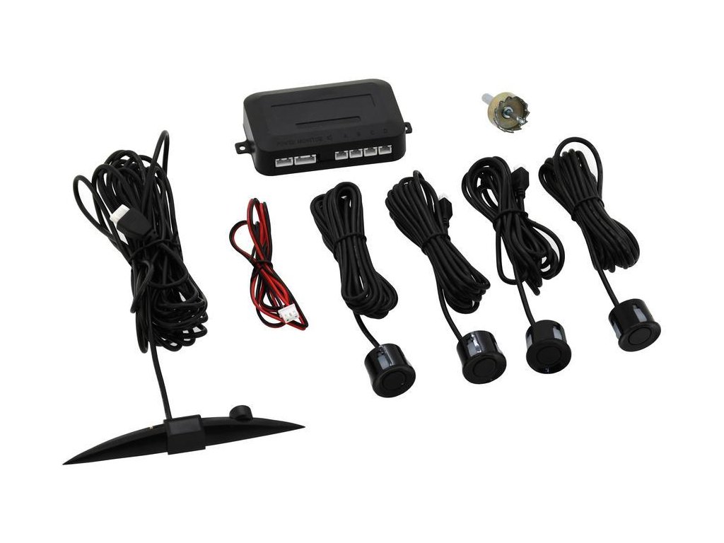 Balení obsahuje displej, řídící jednotku, 4 senzory pro montáž do zadního nárazníku, odpovídající kabeláž a vrták odpovídajícího průměru.