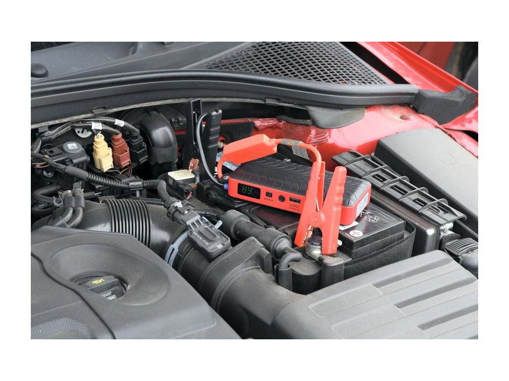Díky funkci JUMP START umožňuje nastartovat vůz s částečně vybitou baterií. Pomocí klipsů se připojuje přímo na autobaterii startovaného vozidla.
