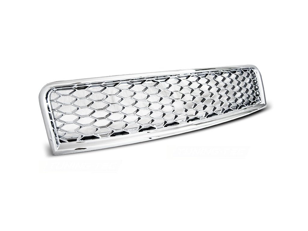 Přední maska Audi A4 B6 10.2000-10.2004 chromová. Materiál: ABS plast. Součásti masky je držák znaku.