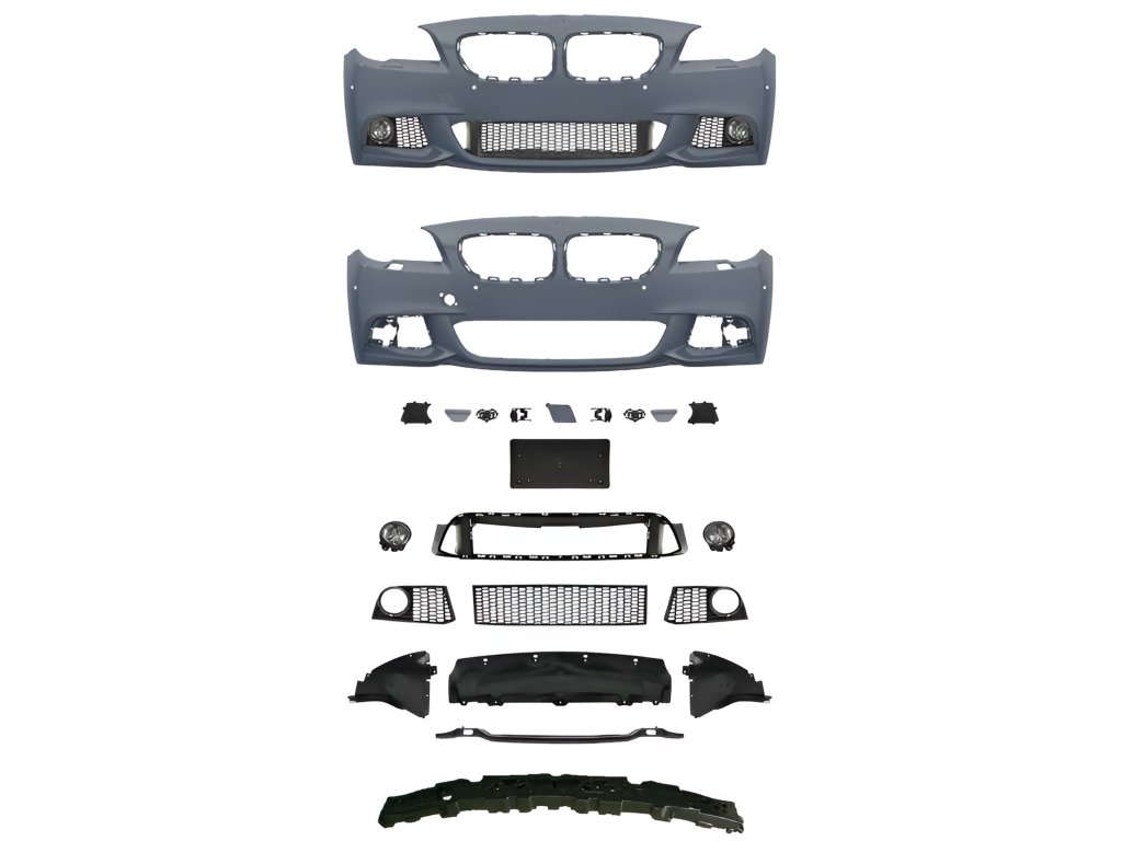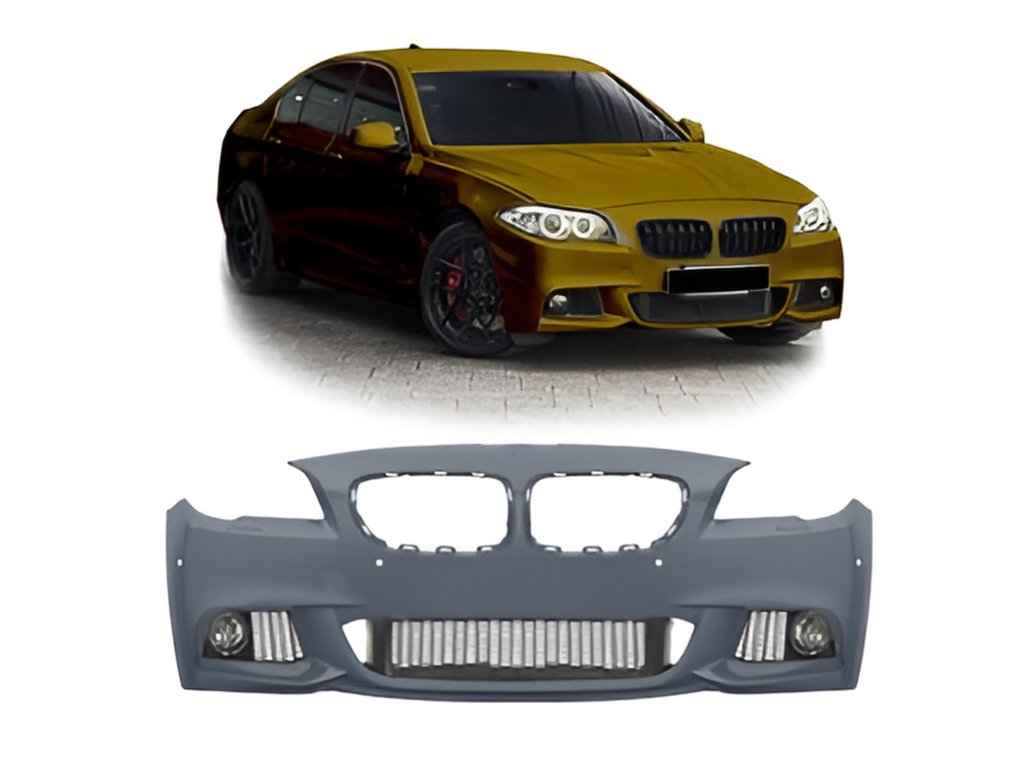 Přední nárazník BMW 5 (F10) Sedan (F11) Touring 2010-2013. Nárazník se vyznačuje vysokou kvalitou zpracování a atraktivním sportovním designem. Je vyrobena z PP, který zaručuje trvanlivost a odolnost proti mechanickému poškození. Povrch nárazníku je nelakovaný, což umožňuje upravit barvu podle vašich individuálních preferencí. Má také prostor pro instalaci mlhových světlometů. Sedí pouze na předfacelift a jeho instalace je jednoduchá.