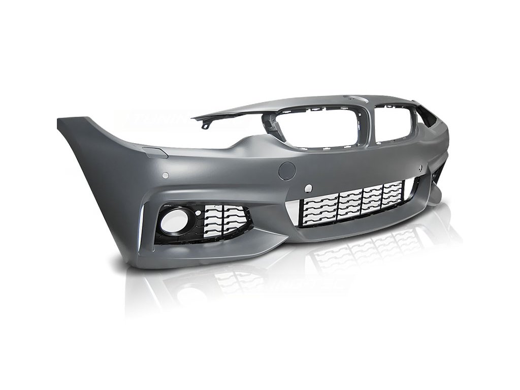 Přední nárazník BMW F32 M-tech style PDC. Skvělá povrchová struktura umožňuje snadné lakování (výrobek je dodáván bez laku). Otvory pro ostřikovače světel, záslepka ostřikovače, záslepka na tažný hák, spodní mřížka nárazníku, rámečky a držáky mlhovek.