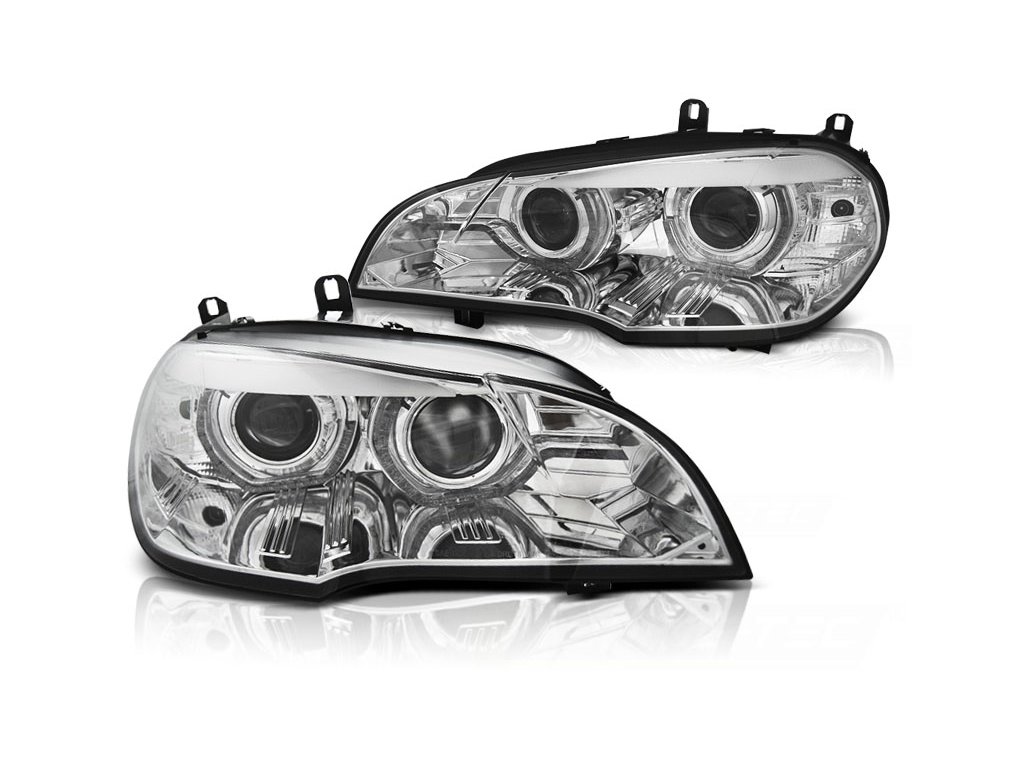Přední světla xenon D1S 3D LED DRL angel eyes, AFS BMW X5 E70 2007-2010 chromová