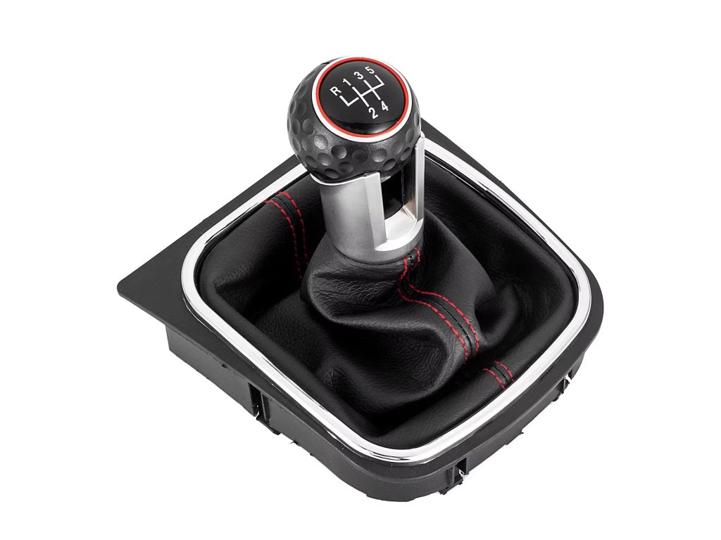 Řadící páka VW Eos 2006-2012 s manžetou a rámečkem, pro manuální převodovku - 5 rychlostních stupňů. Nezaměnitelný stylový design, který dodává vozu luxusní a módní vzhled. Vynikající zpracování, ergonomický design pro pohodlné ovládání. Hlavice z kvalitního materiálu příjemného na dotek, manžeta syntetická kůže, prošitá červenou nití (neutrální, bez zápachu).