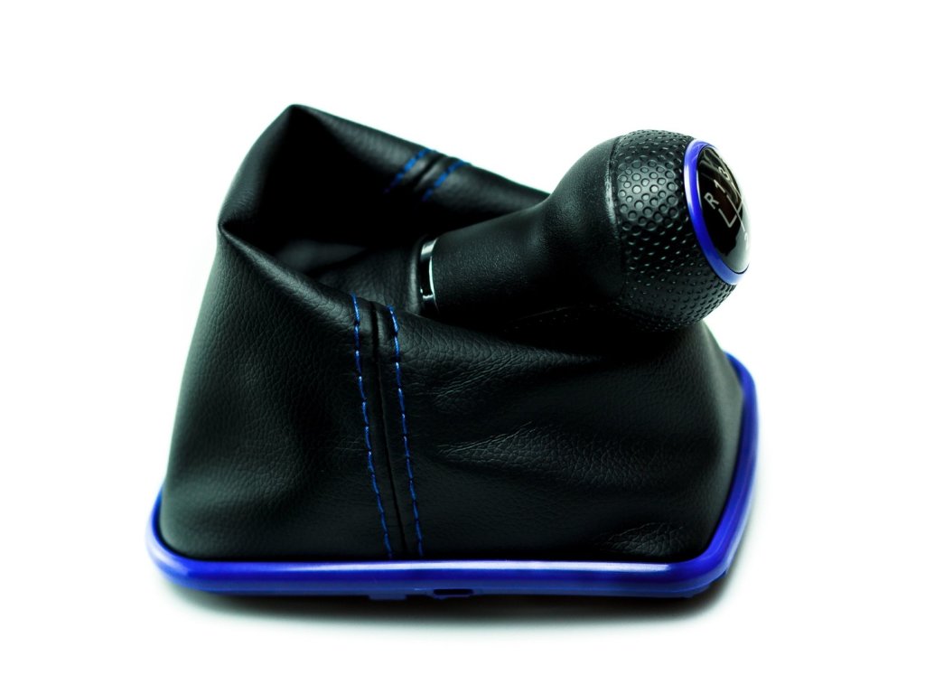 Řadící páka s manžetou VW Golf 4 1998 - 2005 6st. Hlavice je černo-modrá, manžeta je černá prošitá modrou nití. Průměr otvoru pro řadící tyč je 23mm. Pro motorizace 1.4i, 1.6i, 1.9SDI.